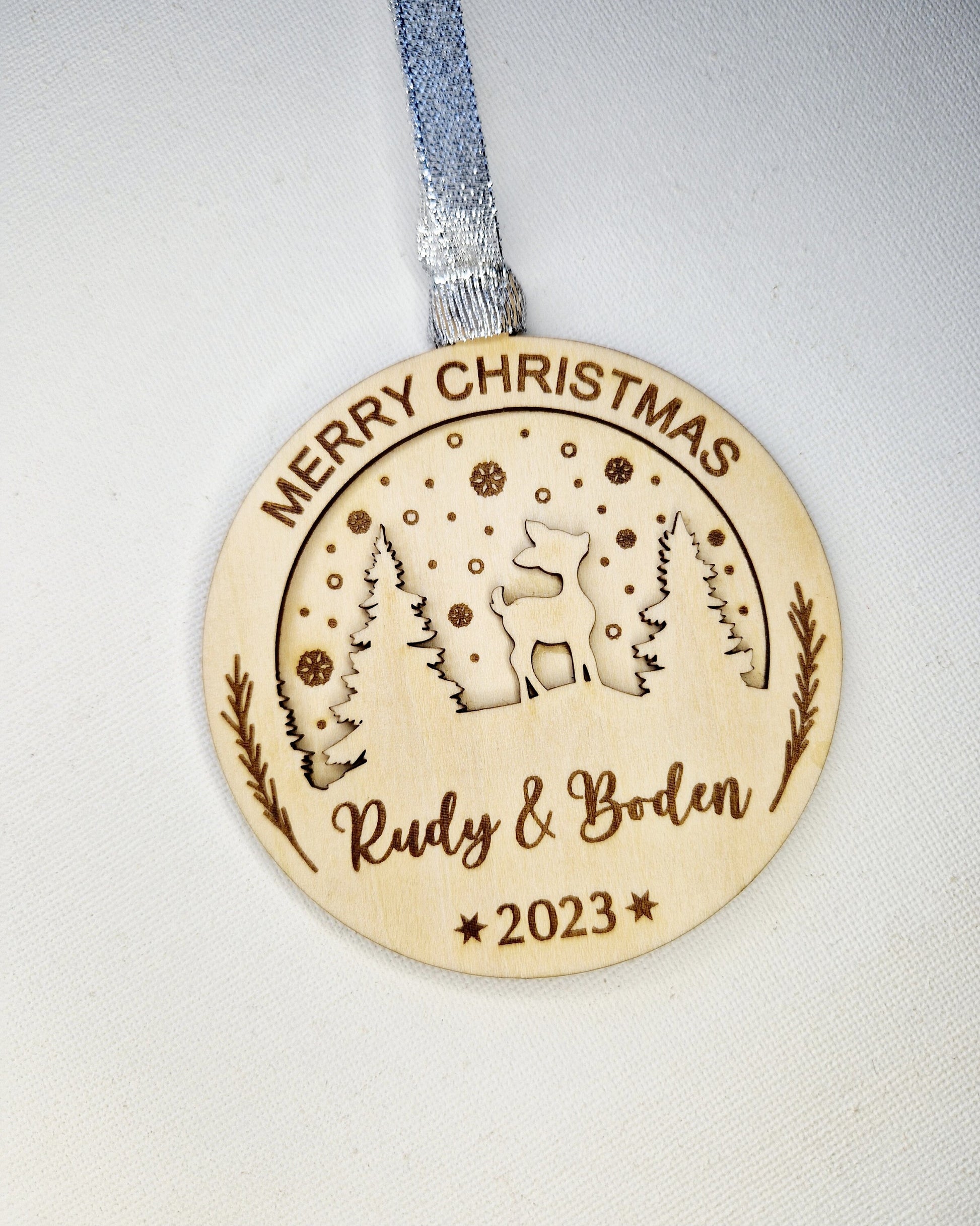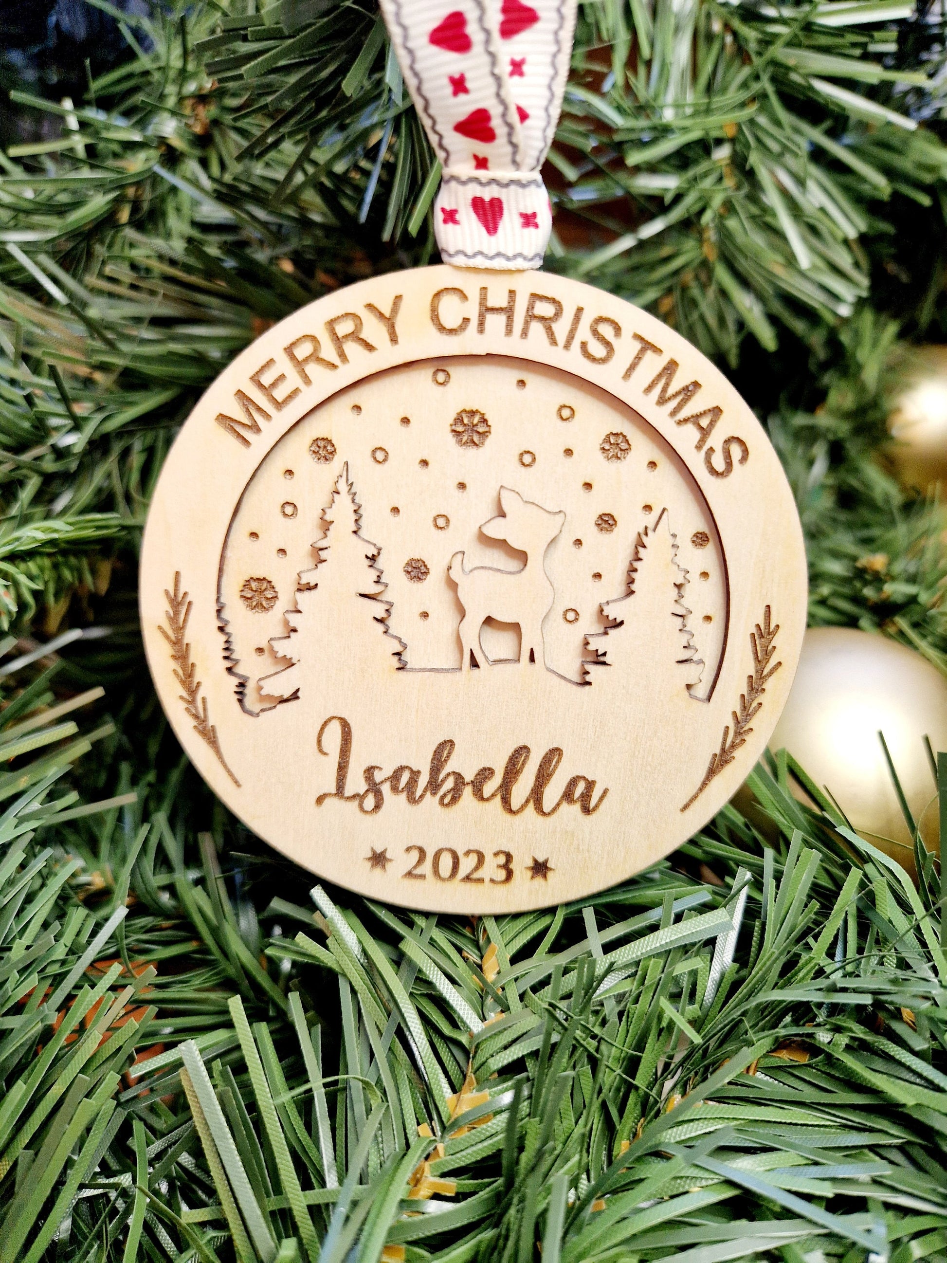 This wooden tree decoration personalised with your loved one's name and year makes it a perfect keepsake to hang on your tree for years to come.