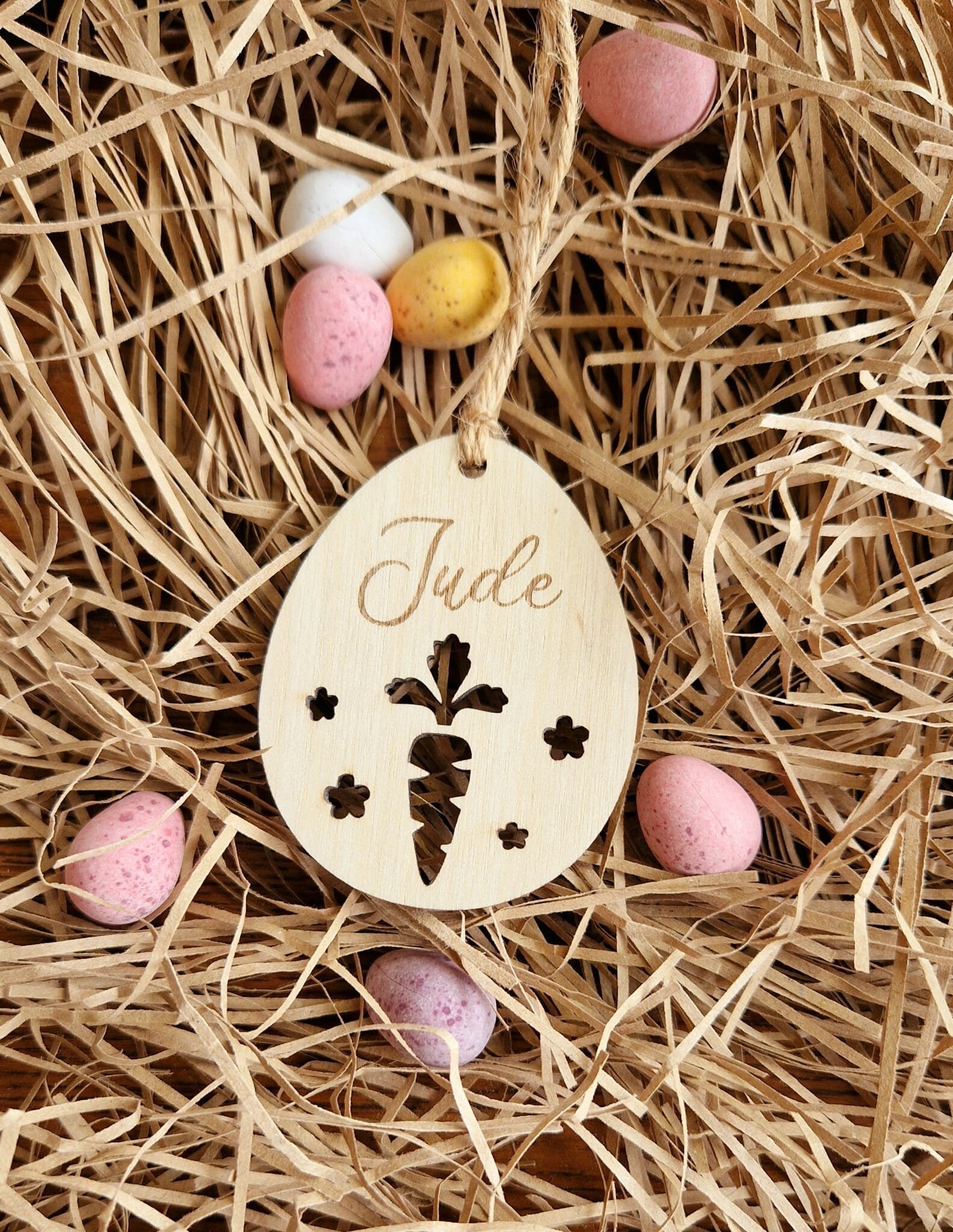 These tags are perfect for adding a personal touch to your easter gifts or child's easter basket and as they are made from wood they can be used for years to come.