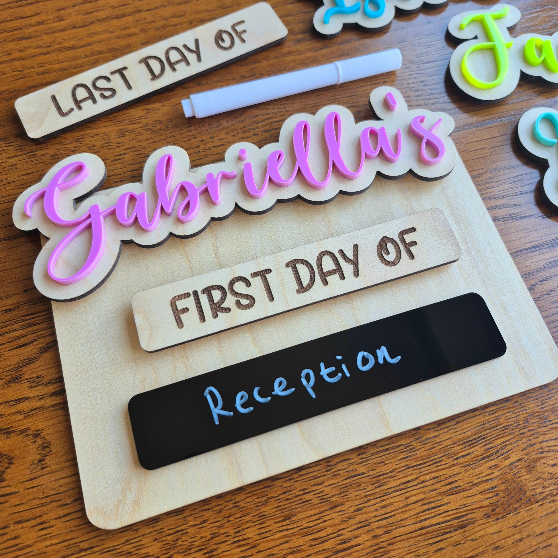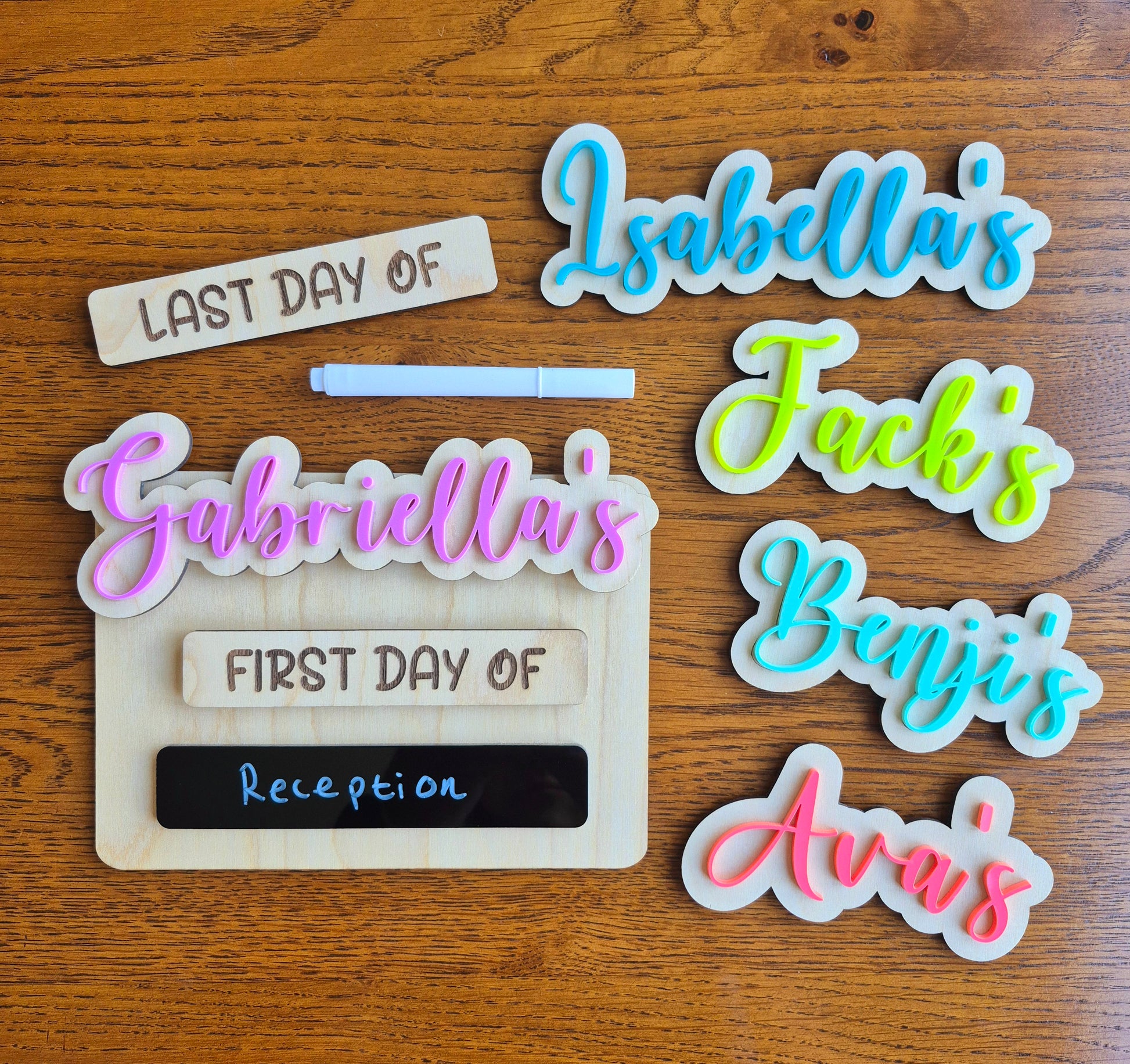 Beautiful wooden interchangeable board designed to capture the precious memories of that special moment when your child embarks on a new journey starting or finishing nursery, school or a school year.