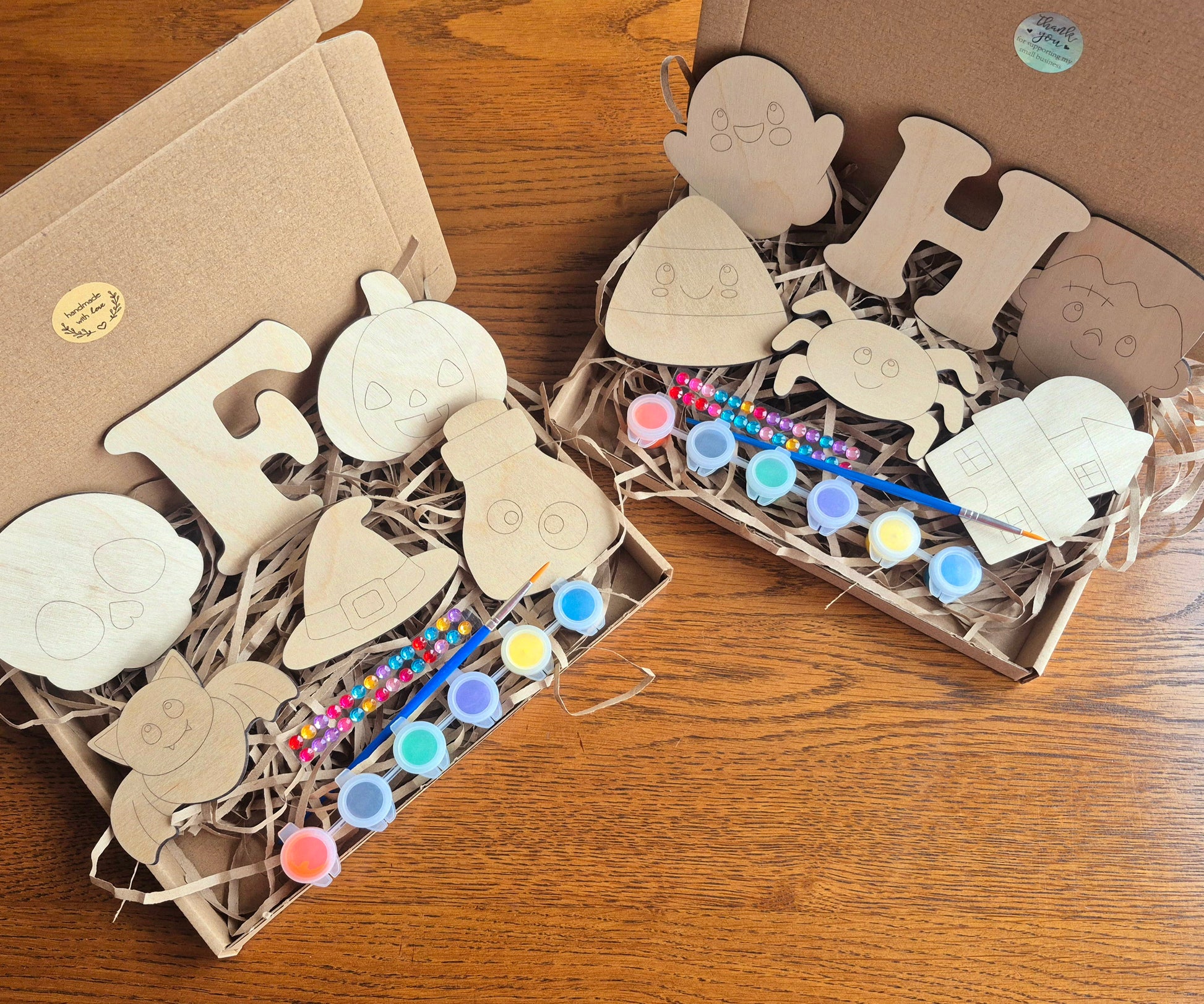 Keep the little ones busy with these Halloween paint your own kits, Perfect for a rainy day.