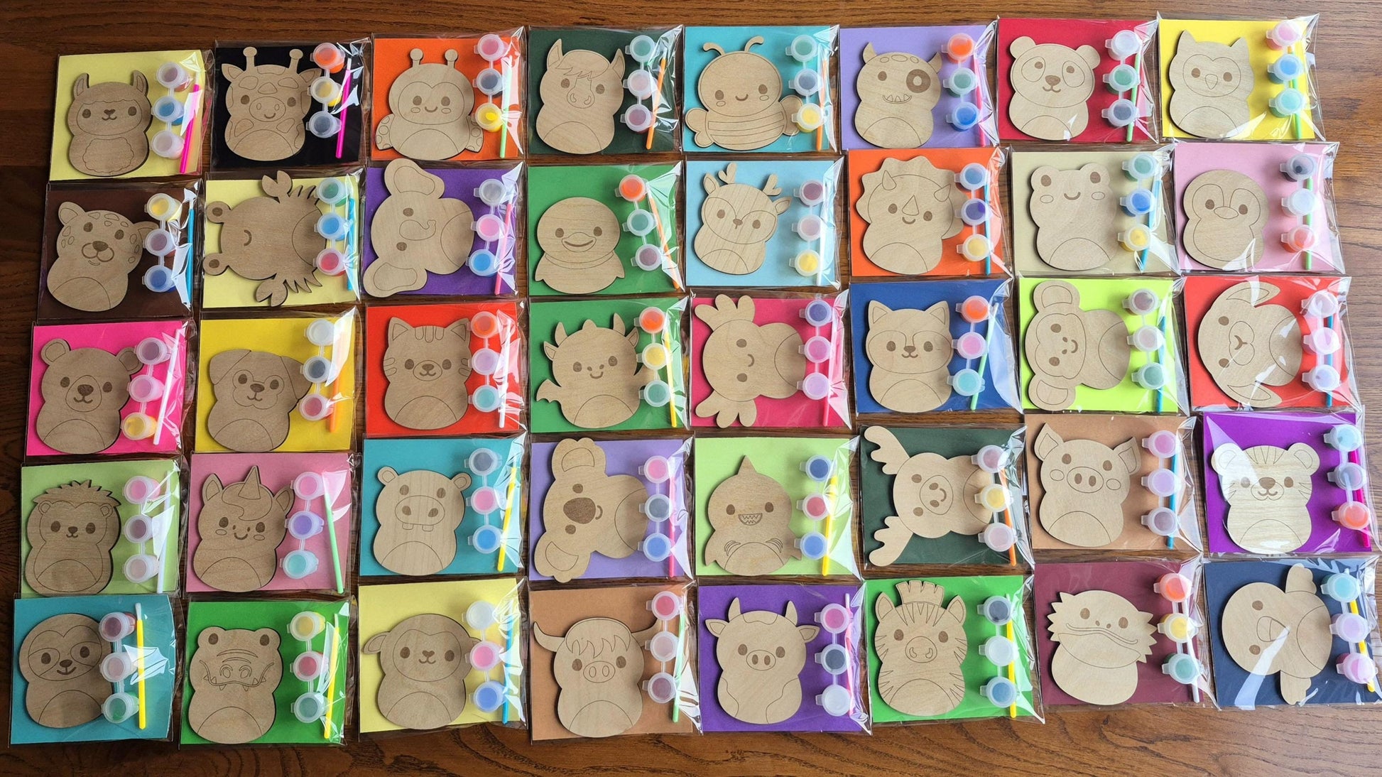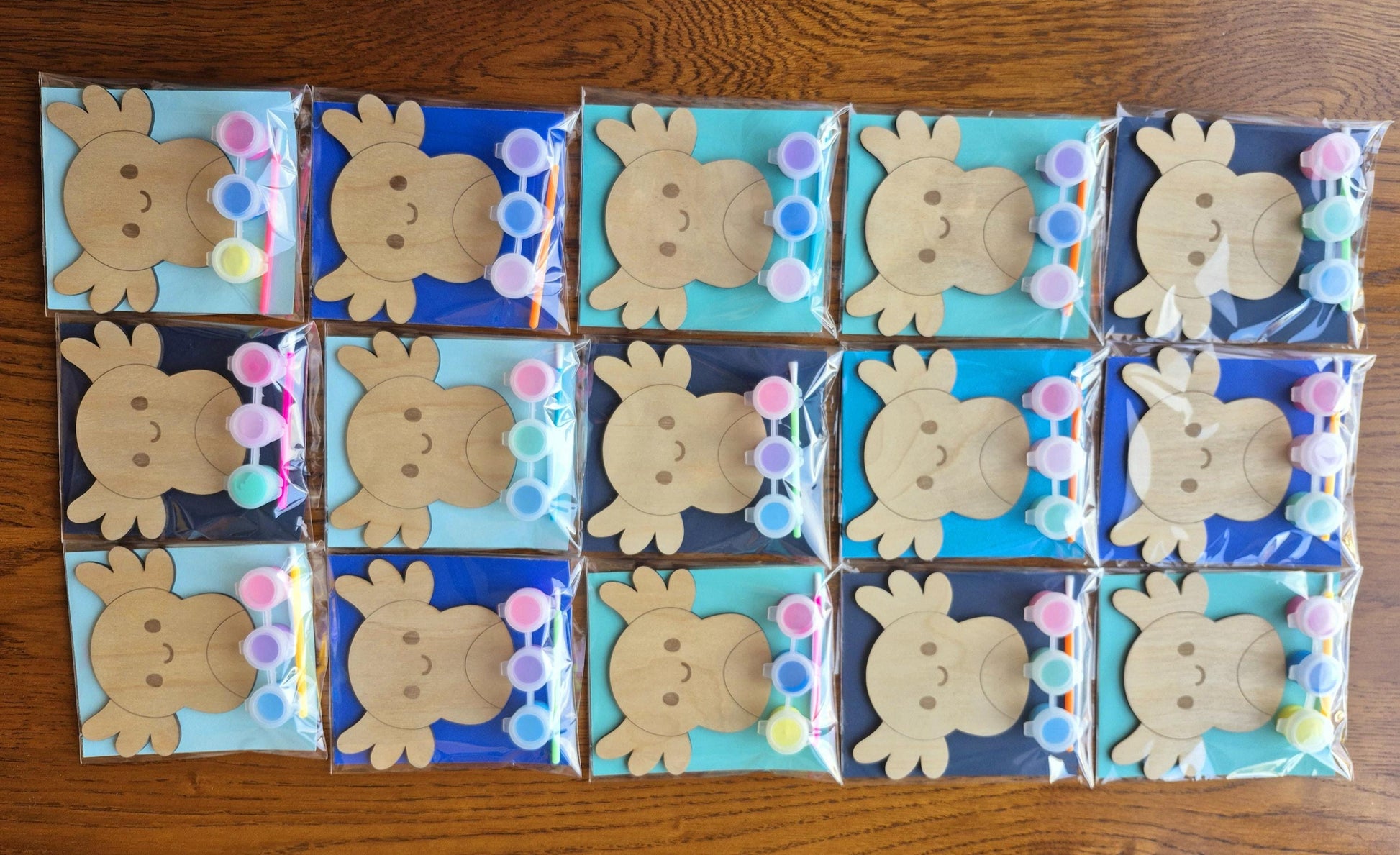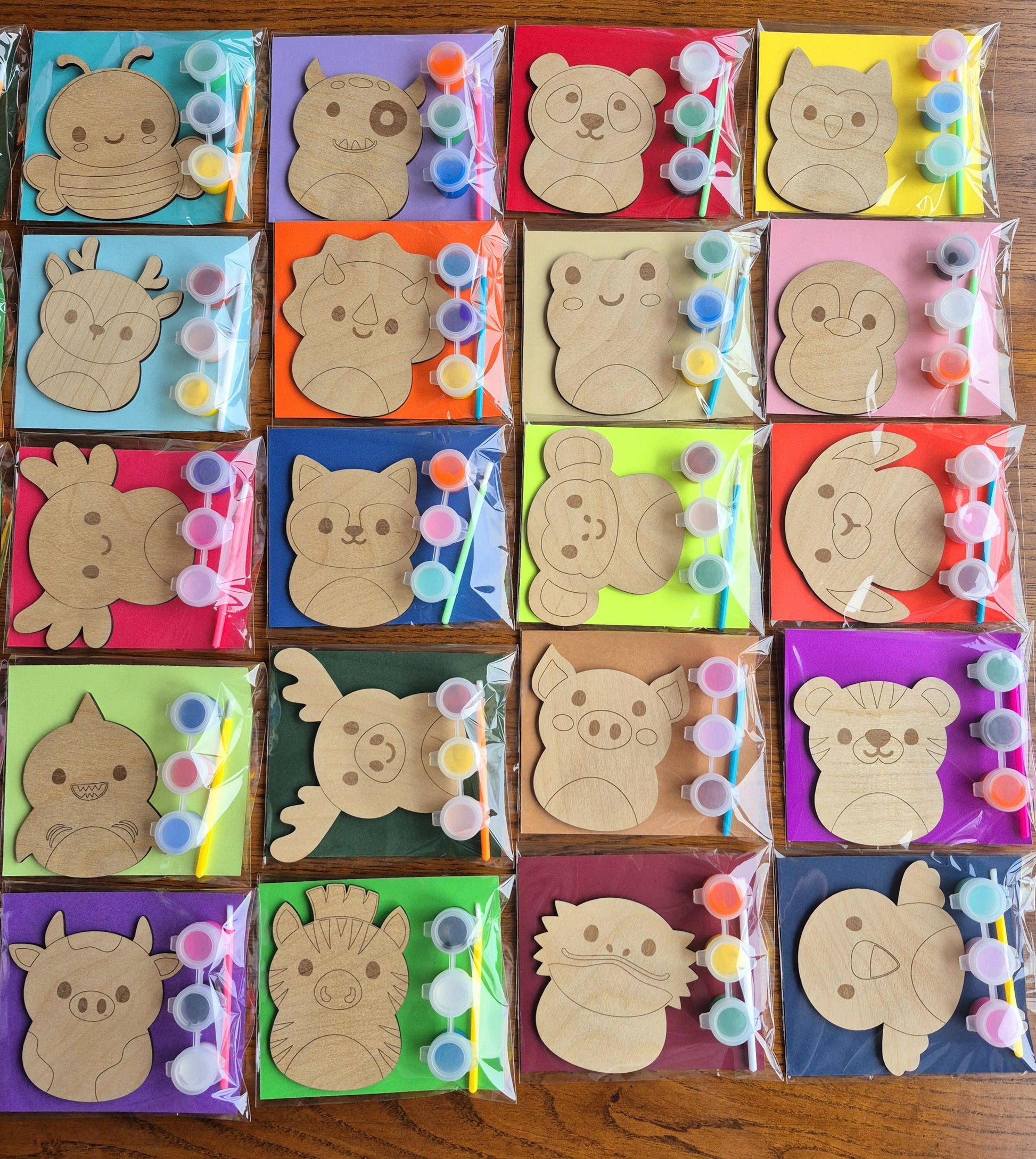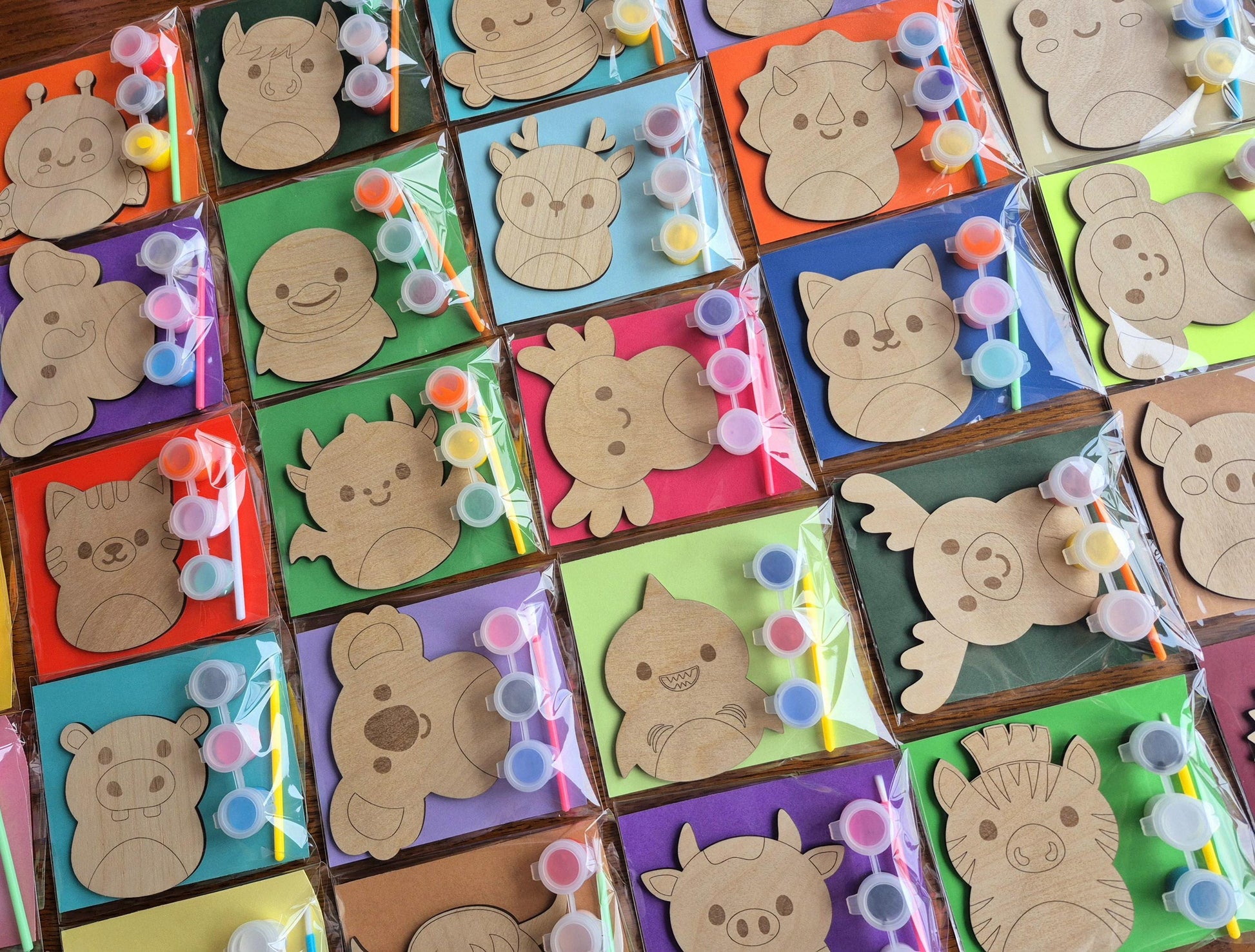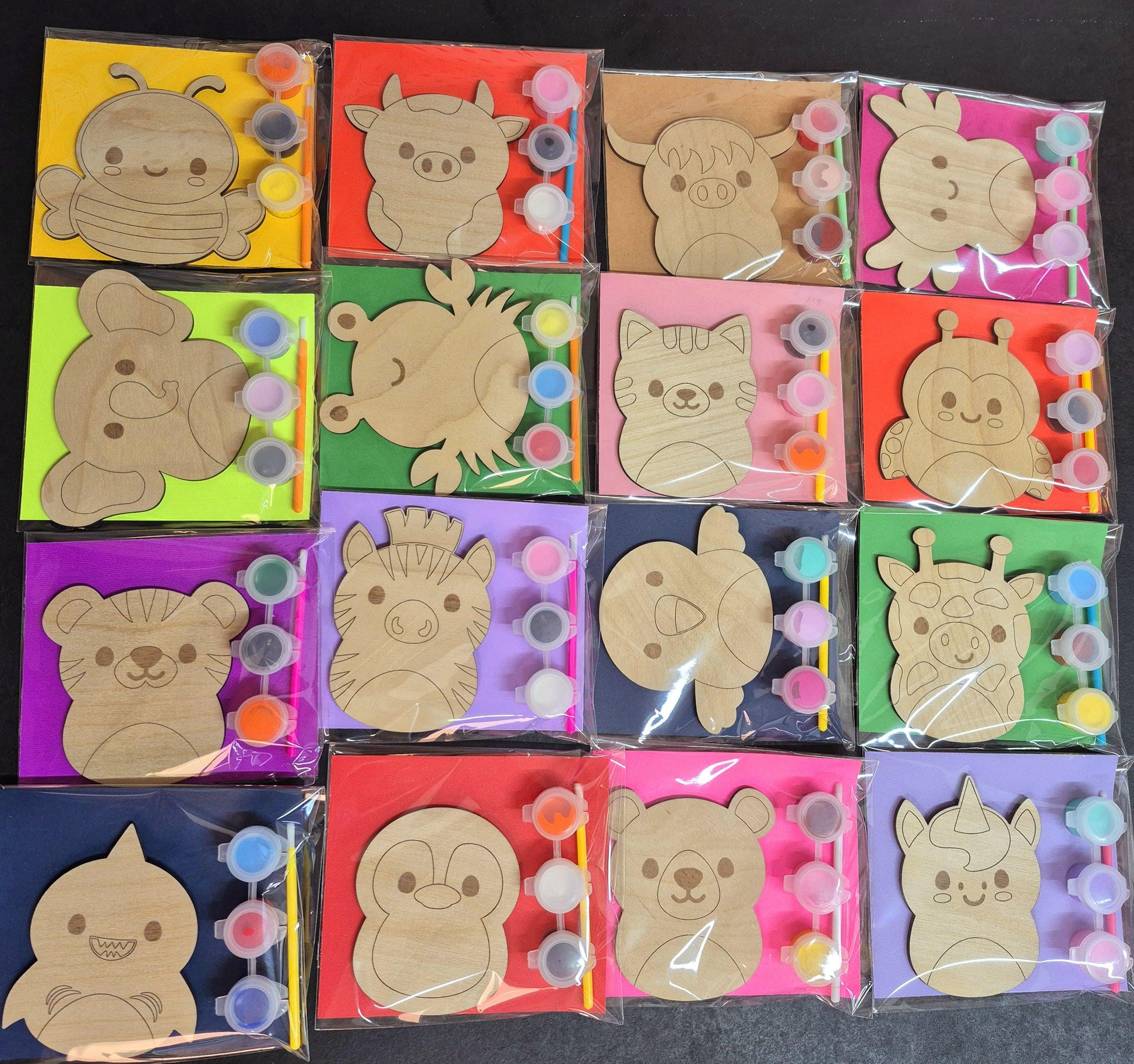 Each kit contains a flat wooden animal shape from koalas to dragons, the collection features a variety of 40 different animals that children will love. The flat design ensures they fit perfectly into party bags, ready to be taken home and painted.