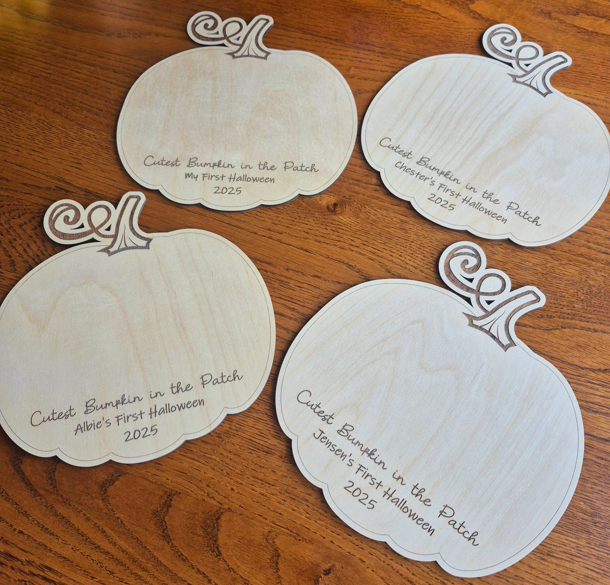 Celebrate your little one's first Halloween with this adorable wooden bumpkin sign, this keepsake is designed to capture the magic of that special milestone.
